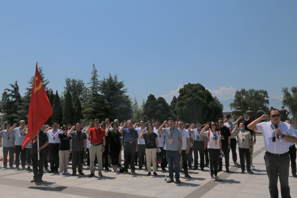 7月13日上午,全体参会人员赴扶眉战役纪念馆开展主题党日活动。在活动现场,陈光德院长和张爱萍书记代表参会党员同志向革命先烈敬献花篮;张爱萍书记带领参会全体党员重温入党誓词;随后,参会人员通过参观扶眉战役展览、聆听革命先烈英勇事迹、瞻仰烈士陵园等方式,感受革命先烈听党指挥、英勇杀敌、浴血奋战、勇夺胜利的革命精神。通过此次活动,进一步提高了全体参会党员同志的党性意识,坚定了理想信念,增强了努力践行为人民服务的使命感和责任感。期间,全体参会人员赴张载祠参观学习,深入感悟了 “为天地立心,为生民立命,为往圣继绝学,为万世开太平”的含义。