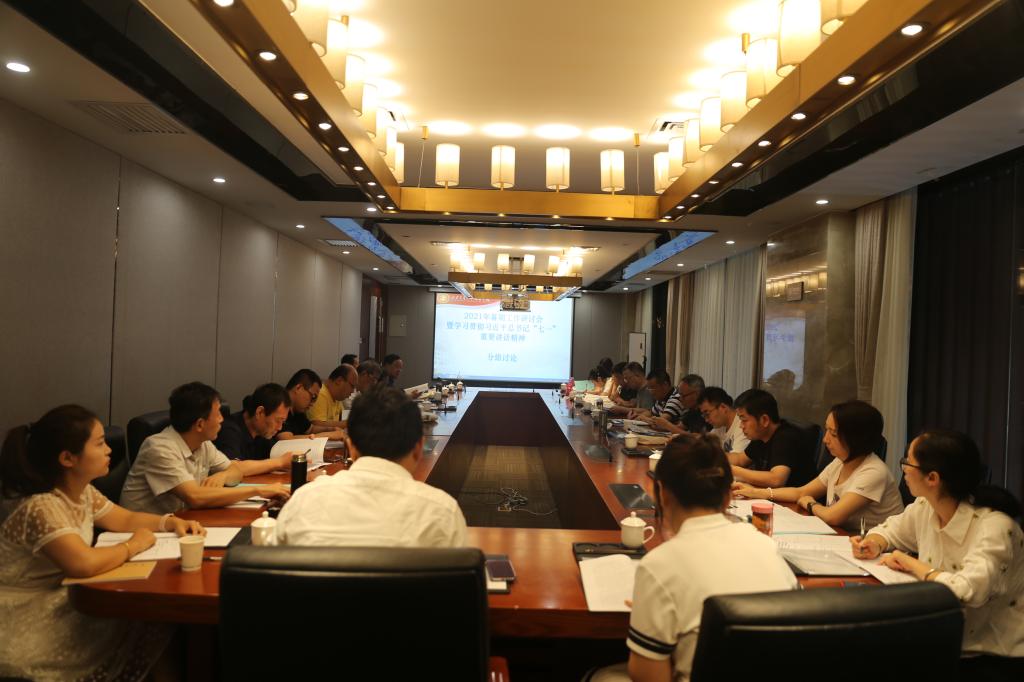 张爱萍书记以《学习贯彻总书记七一重要讲话精神深化新时代大学生素质教育评价方案》为题,从评价方案原则、评价方案聚焦、评价方案基本组成、评价方案的改革内容、修订课外学分管理办法、推进学生健康管理细则实施、构建“多彩青春、活力校园”活动等七个方面阐释了学院深化新时代学生素质教育评价方案。同时,张爱萍书记和与会人员一起探讨了教育工作者的初心使命,即为谁培养人,培养什么人,怎样培养人。