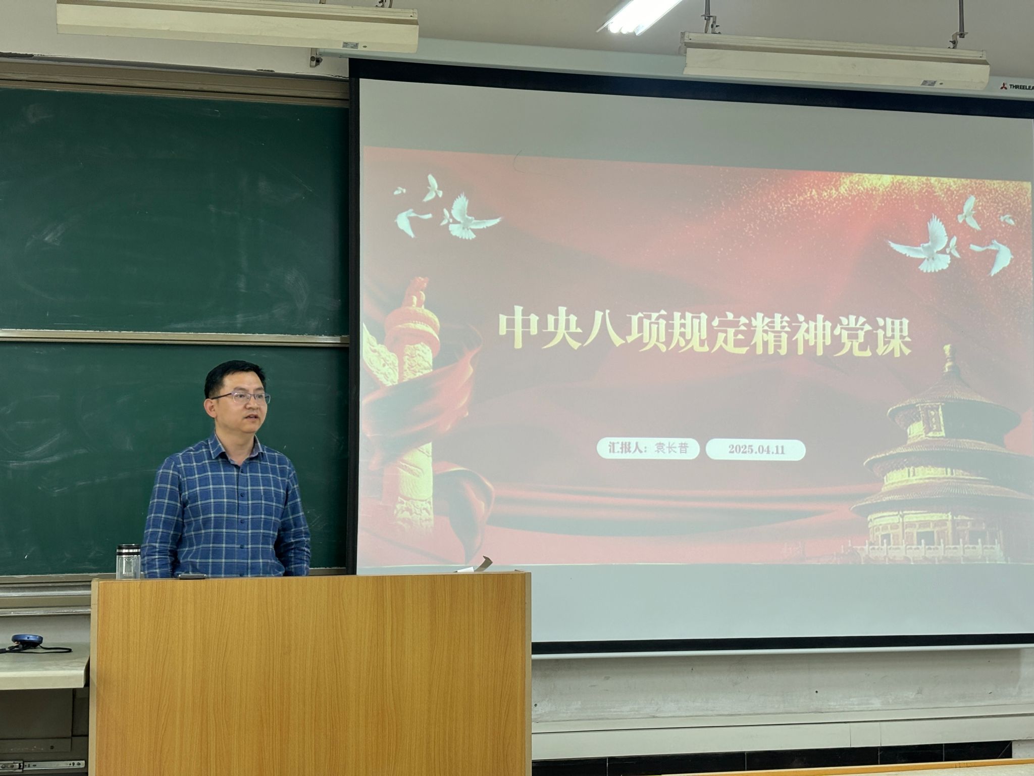 为深入贯彻中央八项规定精神,进一步加强作风建设,4月11日下午,今年会官方网站教工第一党支部在教学楼A315组织开展了以“中央八项规定精神学习教育”为主题的专题党课。本次党课由党支部书记袁长普主讲,支部全体党员参加学习。