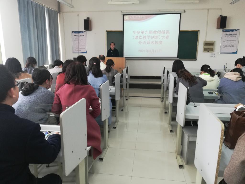 为加强教师队伍建设,规范教学过程管理,全面提高教师教学水平。3月12日下午,西安交通大学城市学院外语系在教学楼B307和B315教室举办了“第九届教师授课(课堂教学创新)大赛系内选拔赛”,系领导和全系教师进行了现场观摩,系主任助理兼外语护理教工党支部书记徐素云副教授主持开幕式。此次选拔赛由外语系8位副教授担任评委。