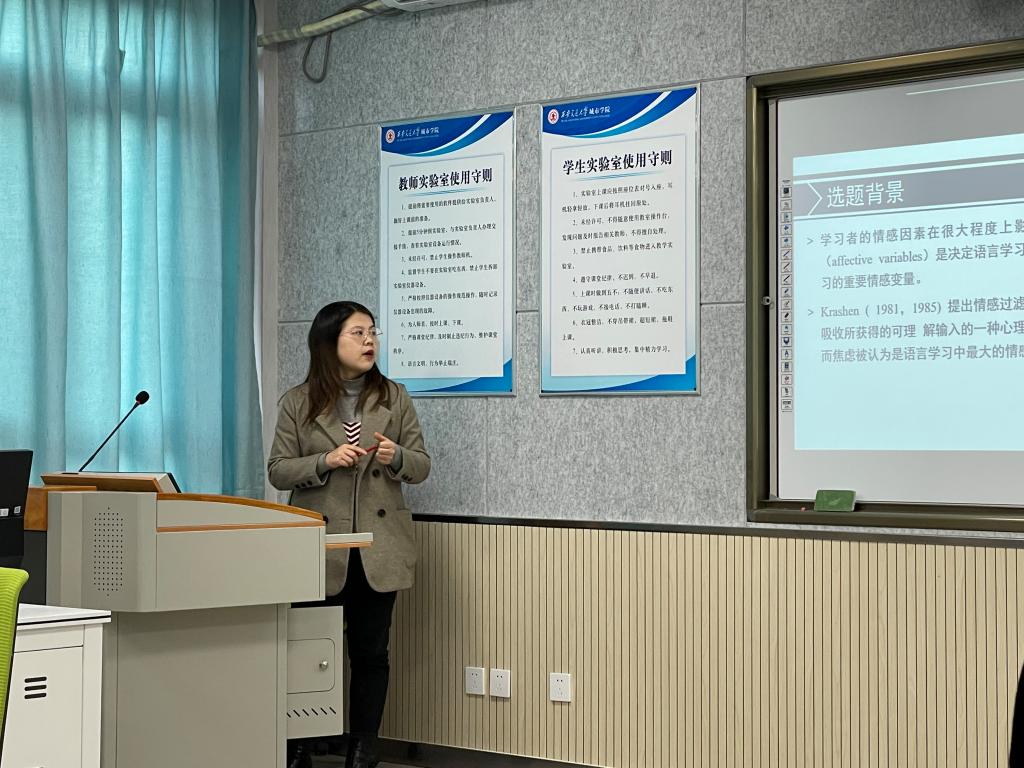 为给新聘教师搭建教学、科研及学习的专题平台,外语系自8月31日本学期开学起,每周一下午由系主任、副主任和主任助理为新聘教师进行了为期一个学期的教学法理论和科研专题授课和研讨。此次汇报是对研修班每位教师学习效果的全面总结和进一步提升。