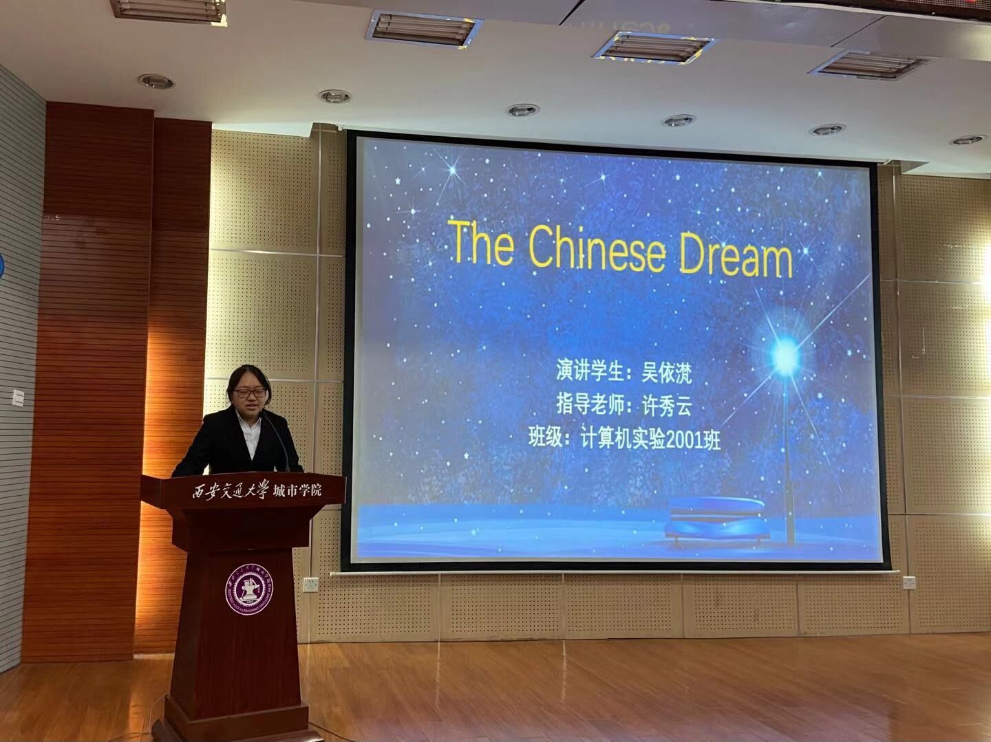 本次比赛一共有十五位选手参加。比赛分为“命题演讲”和“即兴问答”两个环节。围绕“MyChinese Dream”这一主题参赛选手们在舞台上侃侃而谈,充分展示了自身的风采,流利的英文表达,正宗的英语发音,每位选手的演讲都给在场的观众和评委留下了深刻的印象。在即兴问答环节,选手们逻辑清晰地回答,赢得了观众的阵阵掌声。经过一个多小时的激烈角逐,来自计算机2001班吴依滼和英语2001班徐高一铭分别斩获大学英语组和英语专业组的一等奖。在比赛的最后,外教Alessio就本次比赛进行总结,表达了对所有台前幕后的工作人员的感谢,对大家的表现给予充分的肯定。