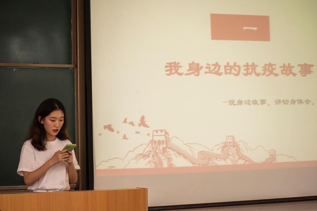 活动伊始,杨耀聪对本次活动进行了安排部署,讲述了在疫情期间自身的心得感悟,教导大家在疫情期间要起到党员的先锋模范带头作用,要始终坚定理性信念,坚守初心使命。随后,由学生党员代表翟子越、赵嘉琛等同学讲述关于自己身边的抗疫故事,分享切身体会。最后支部党员们在一起共同观看了秦宣教授的专家报告《疫情防控中的中国制度优势》,视频中充分体现了我国应对如此大规模突发公共卫生事件的能力和担当,也再次集中彰显了中国特色社会主义的制度优势,即坚持党的集中统一领导、坚持以人民为中心的价值追求、集中力量办大事等。