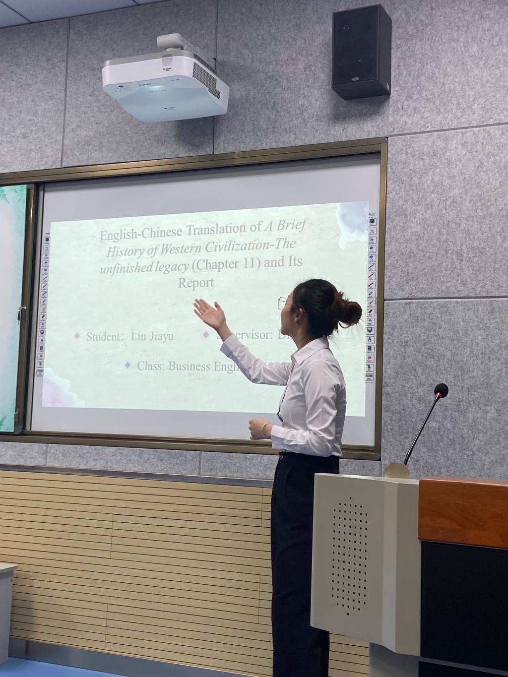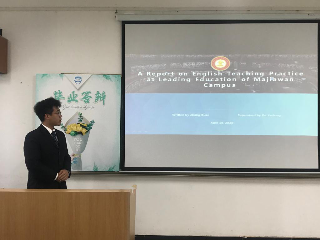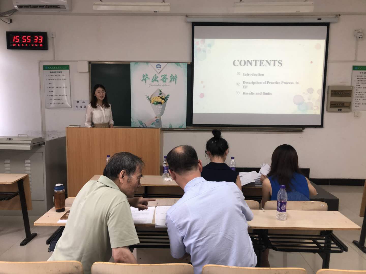 参加答辩的同学早已准备就绪,各个跃跃欲试,等待着完成大学里最后一次实战性的“考试”。答辩具体流程分为学生自述、教师点评提问、学生答辩三个环节。答辩学生沉着冷静、自信泰然,就论文题目选择、框架、研究内容等方面用英文或日文进行简明扼要的论述,接着从容回答老师的提问。