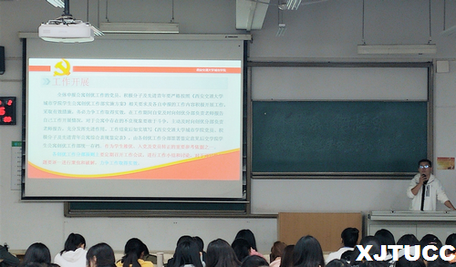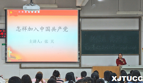 为加强学生对中国共产党的深入了解,西安交通大学城市学院外语系、传播系于9月29日和10月8日晚在教学楼E200教室分别进行两次党课基础培训班的学习。两次党课由外语系、传播系学生党支部书记张天老师和艺术系学生党支部书记李成老师主讲,来自外语系及传播系的一百余名先进青年参加了党课学习。
