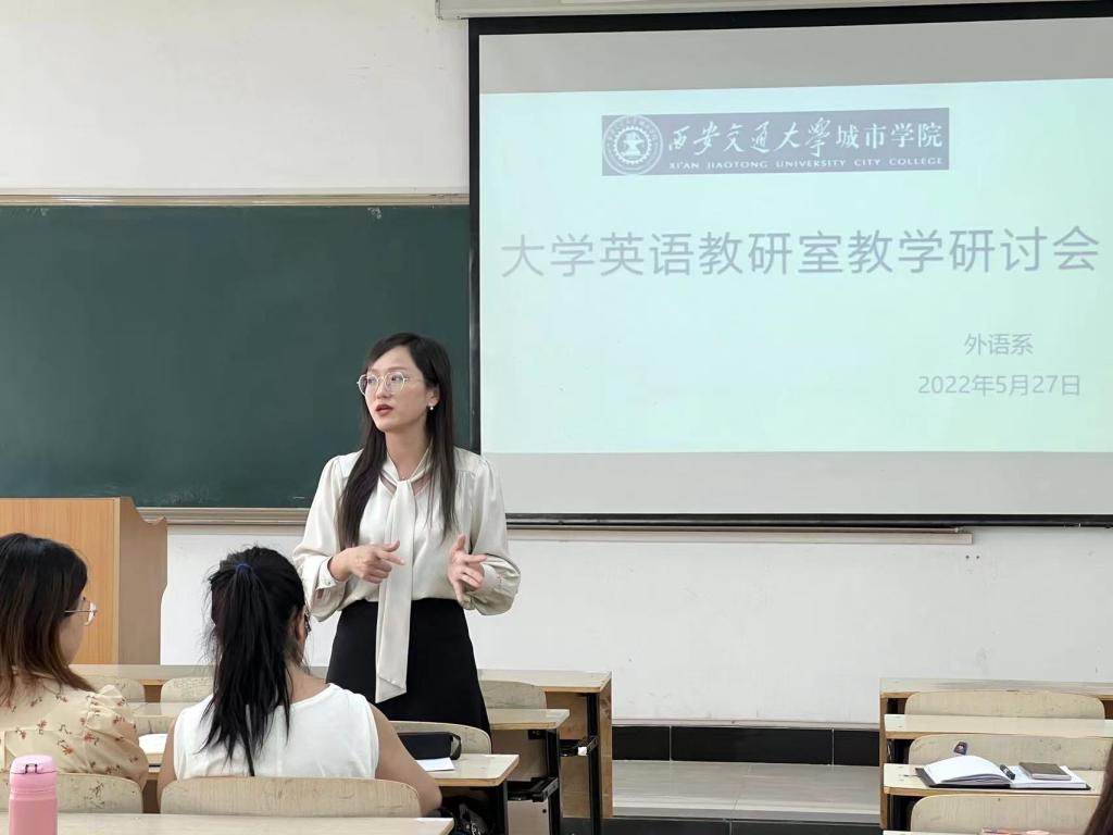 2022年5月27日下午,西安交通大学城市学院外语系大学英语教研室在教学楼C316举行了教学研讨会和四级阅读讲座,会议由大英教研室主任巫奕君副教授主持。