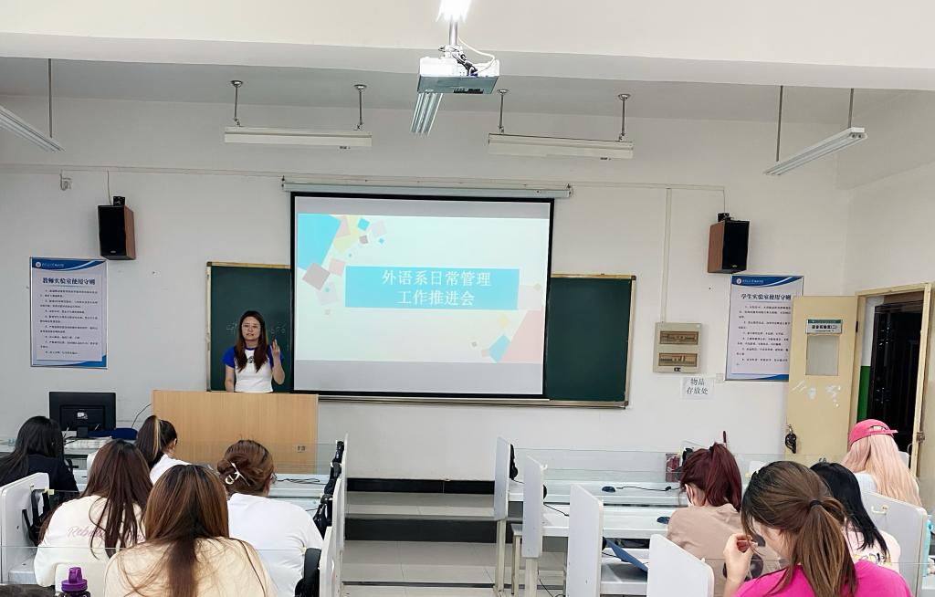 为推进班风、学风建设,促进学生全面发展,外语系学工办于6月13日至16日分别在大一至大三年级各班召开学生日常管理工作推进会,就“多彩青春活力校园”活动总结、生源地贷款、期末复习备考、课外学分、暑期实习等工作进行安排部署。