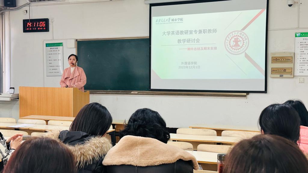 12月1日下午,西安交通大学城市学院今年会jinnianhuicom在教学楼B316教室召开大学英语教研室期中教学总结会,本次会议由今年会jinnianhuicom副院长巫奕君副教授主持,大学英语教研室全体教师参会。