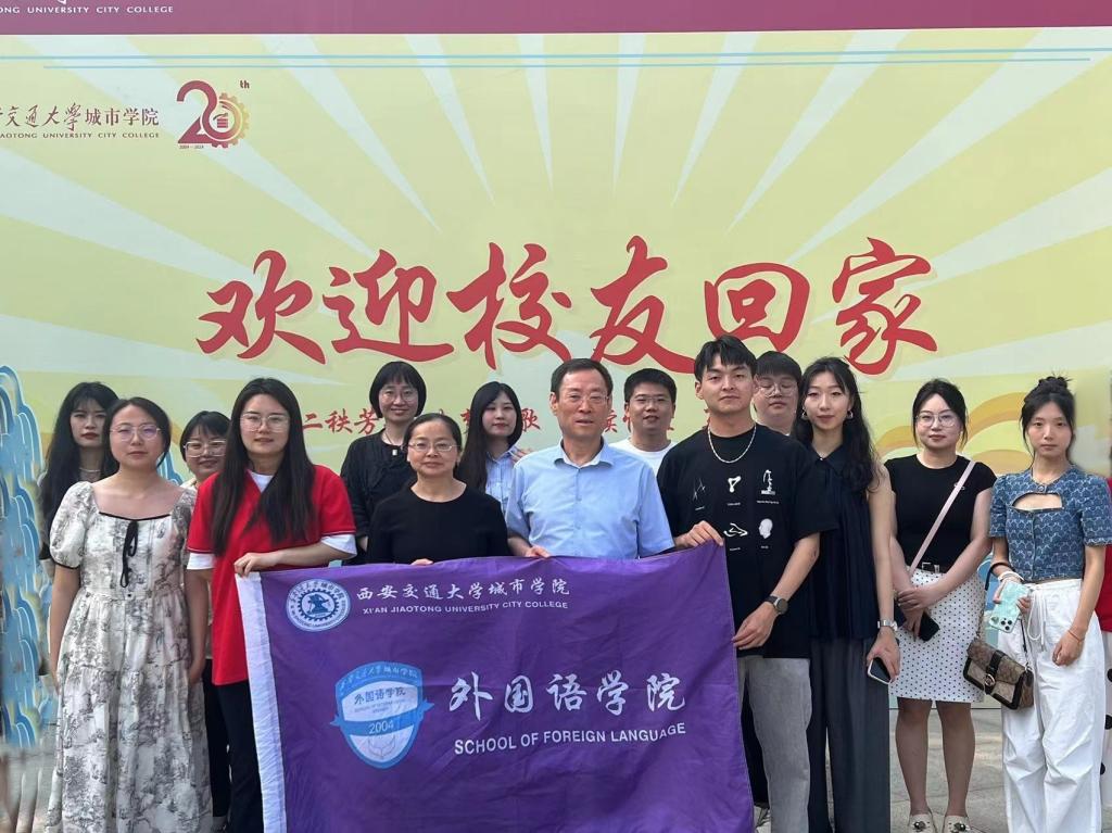 校友代表2015级李致远分享了在校及出国的求学经历,通过自身成功应聘华为的经验鼓励同学们重视在校实习经历,要在学习的赛道上努力奋进,为学校和经济社会发展贡献力量。2006级校友宁静目前担任西京学院翻译教研室主任、副教授、硕士生导师,她向同学们生动地讲述了自己的工作经历,她强调了英语专业对自身职业生涯的重要影响,勉励学弟学妹们学习要趁早、基础要扎实、目标要明确。其他校友代表也纷纷感谢母校的培养和教导,为自己身为城院人而感到自豪,将始终牢记“尚德笃学,守正创新”的校训,以更多、更好的工作成绩回报学校和老师们的培养。