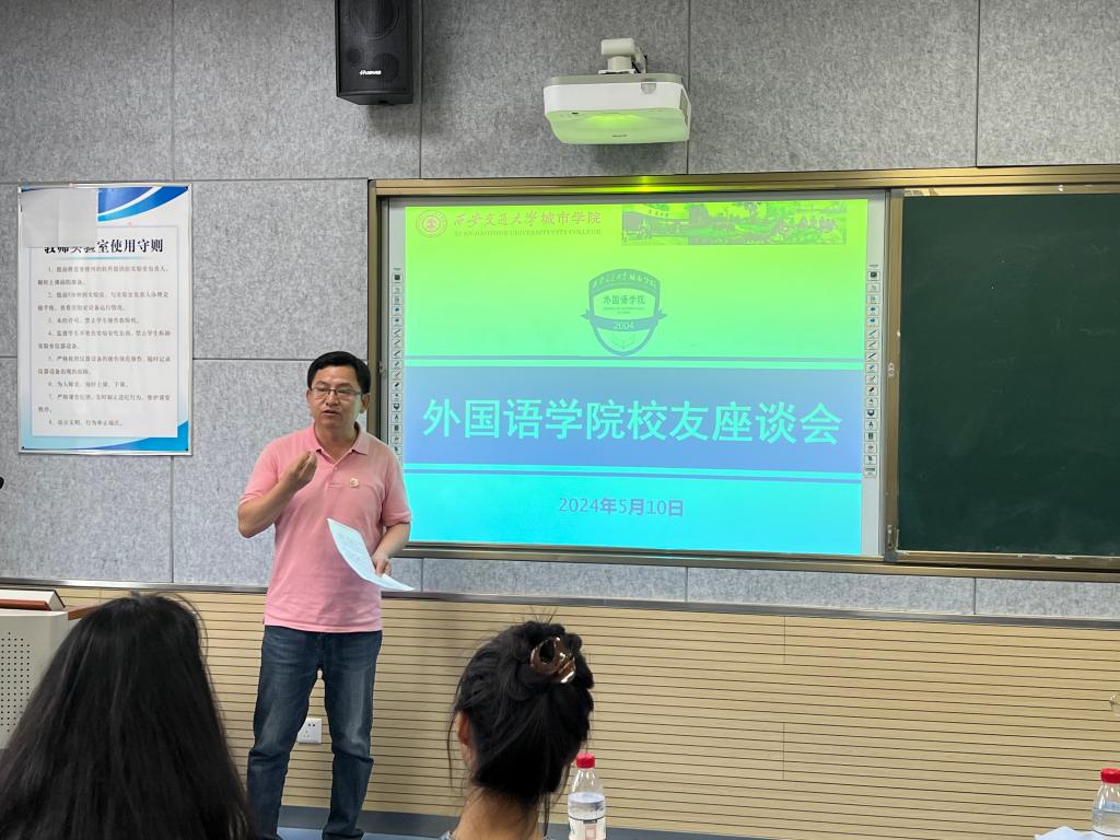 5月10日下午,今年会jinnianhuicom在B304召开校友交流座谈会,师生、校友代表欢聚一堂,畅叙情谊,共谋发展。院长郭继荣、副院长徐素云、院长助理吴夫迎、英语系主任丁媛、副主任袁长普、院办主任关天骄、学生工作负责人吴丹出席座谈会,会议由团工委书记韩蓉主持。