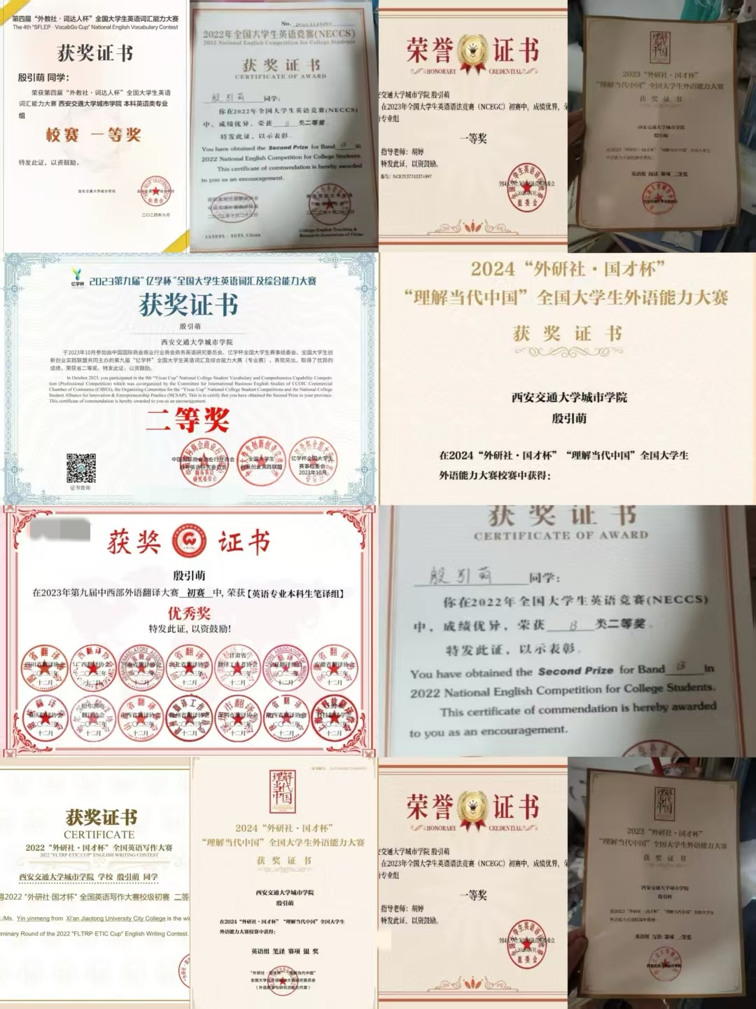 •第九届“亿学杯”全国大学生词汇及综合能力大赛二等奖